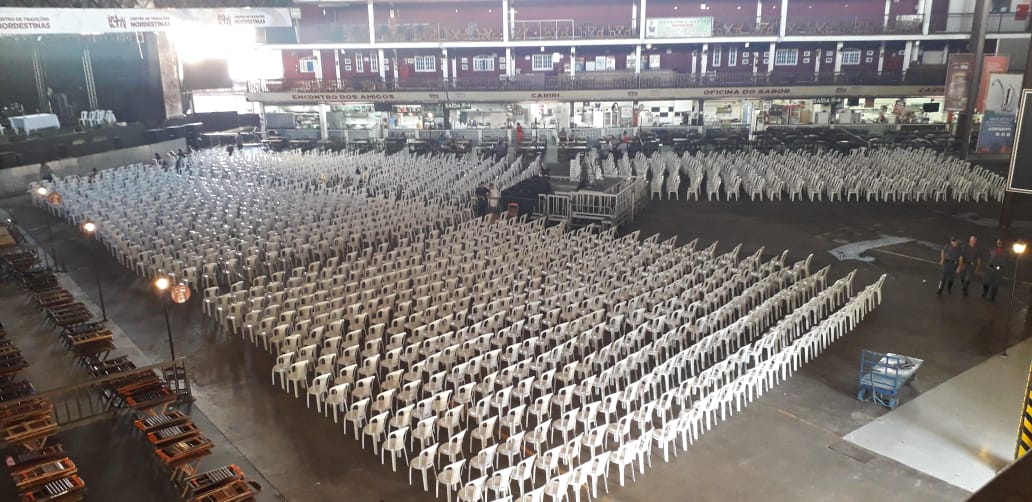 Mesas, cadeiras, toalhas, louças, copos, tendas, equipamentos de som e iluminação — tudo com qualidade, praticidade e o melhor custo-benefício.
